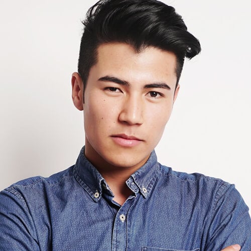 A high-quality image of a young professional man with a confident expression, dressed in casual denim, representing modern business and corporate success for CAJA Group.