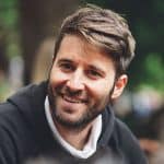 An image of a young man with dark hair and glasses, concentrating on his work at a laptop in a warm, rustic cafe, highlighting modern workspace solutions.