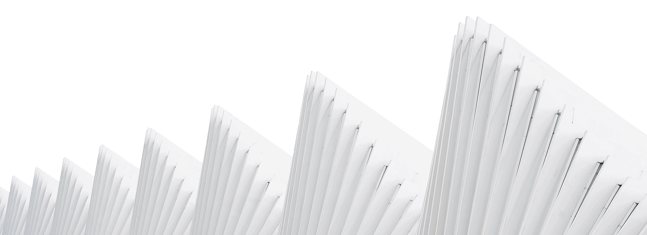 A stunning view of a contemporary building facade with white vertical fins, showcasing innovative architecture and modern aesthetics.