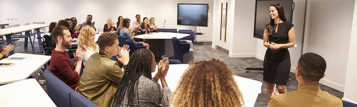 Home Female teacher addressing university students in a classroom Female teacher addressing university students in a classroom