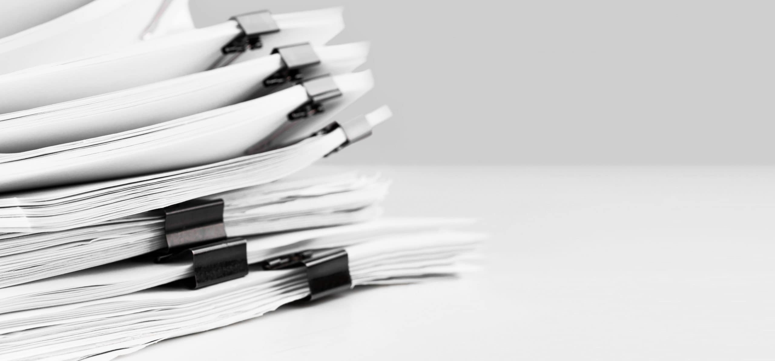 A neat stack of paperwork with clips, exemplifying efficient business filing and archive solutions at CAJA.